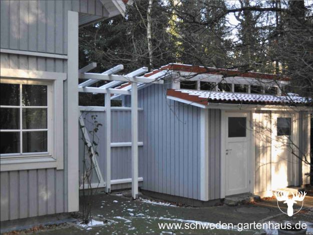 Modernes Design - Gartenhaus im schwedischen Style. Durch das obere Lichtband ist diese Haus ideal als Wellness- oder Hobbyhaus. Aber auch für alle anderen Ideen und Bedürfnisse ist es selbstverständlich offen.