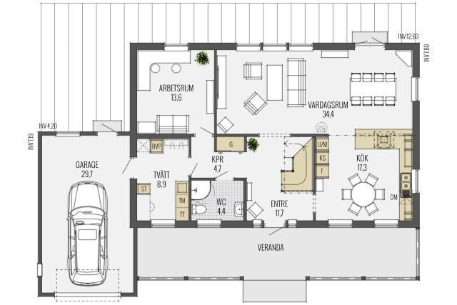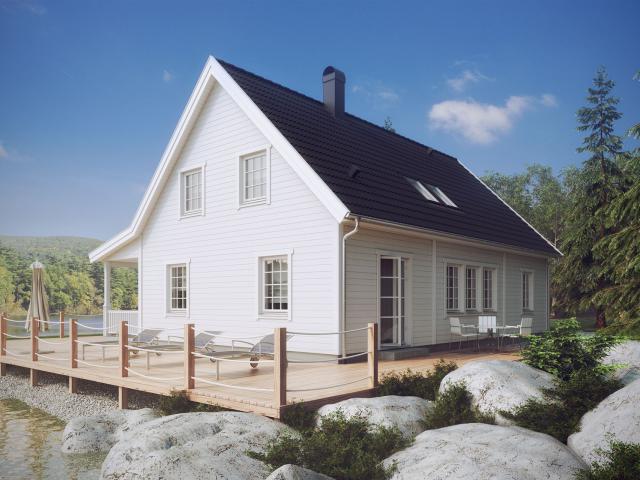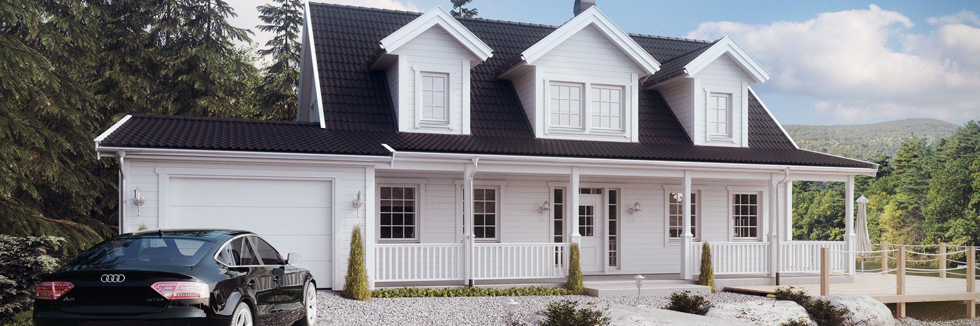 Angelehnt an die Architektur der amerikanischen Südstaaten, weisen die Frontveranda und die auffallenden Gauben des Dachbereiches auf den beliebten Southern Country Style hin. Miteinbezogen in die Planung wurde eine Garage, die mit dem Haus verbunden ist. Mit einer Gesamtwohnfläche von 176 m² avanciert dieser Entwurf zu einem perfekten Familienhaus.
