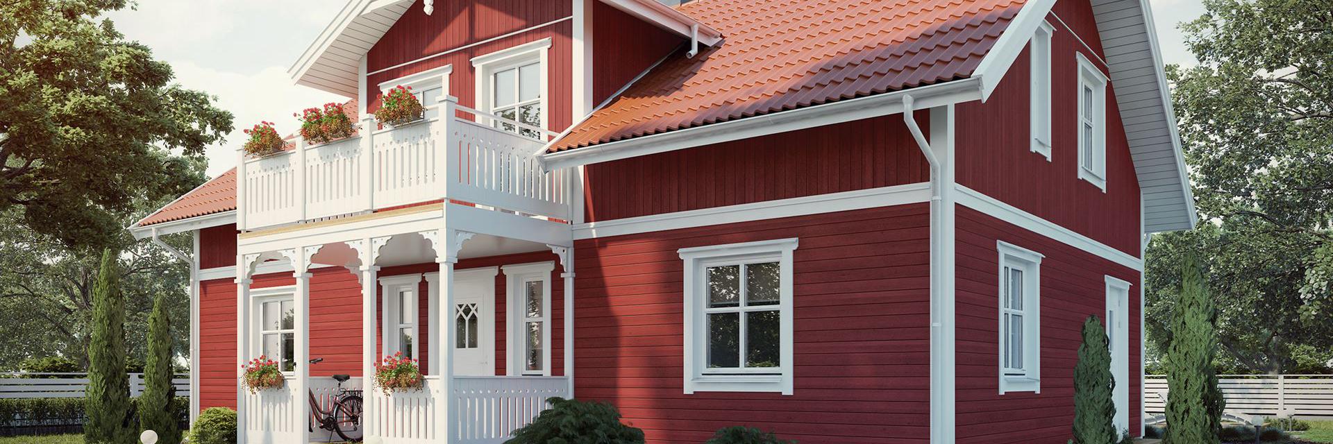 Tallbacken ist mit seinem Charme der Vergangenheit unser klassisches Landhaus. Die Romantik vergangener Tage, vereint mit den Bequemlichkeiten von heute, lassen das Haus zeitlos erscheinen.Der solide Charakter wird durch die Profilholzverschalung, die dekorative Verzierung der Giebel, die schönen Einfassungen der Fenster und den äußerst eleganten Eingang hervorgehoben.