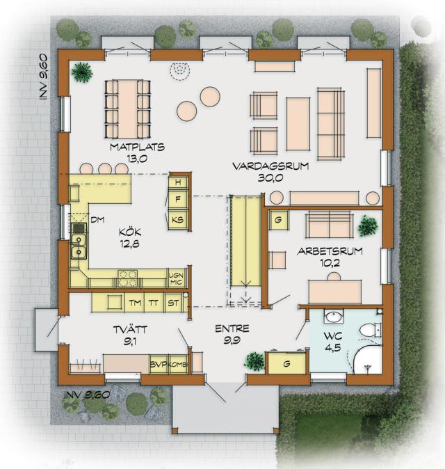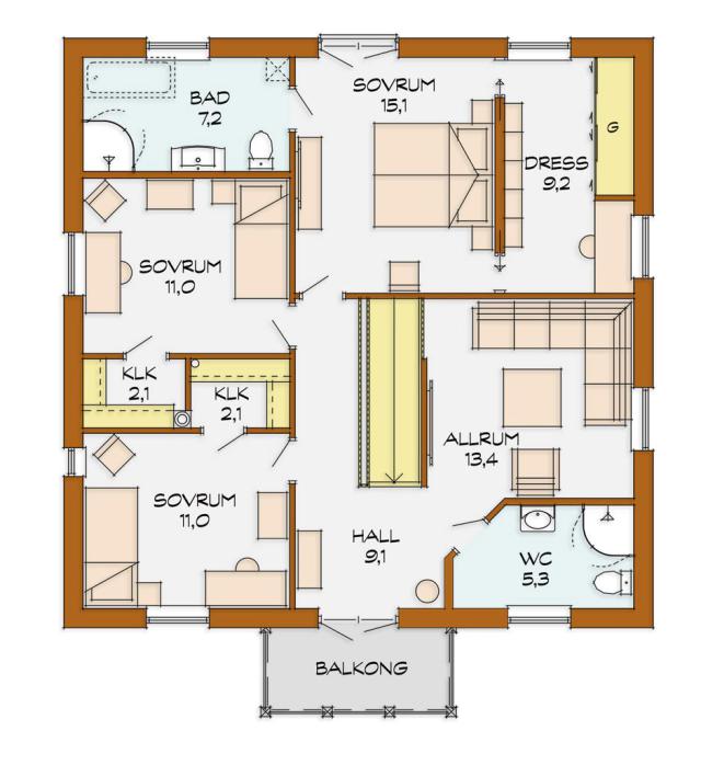 Quadratisch, praktisch gut. Das kann man über diesen Planungsvorschlag durchaus sagen. Aber dieses Haus hat viel mehr zu bieten als man auf den ersten Blick wahrnimmt. Hinter der Eingangstür liegt die Diele die den Blick auf eine elegante gerade Treppe freigibt. Wenige Türen, dafür ein Raumangebot, das es mit einer Villa aufnehmen kann.