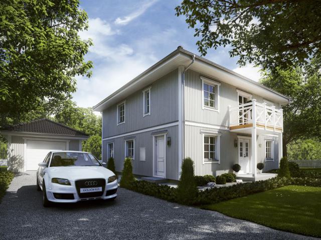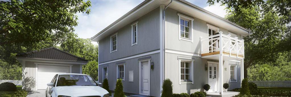 Rönnäs präsentiert sich in einer kubistischen Formensprache, die zusammen mit der symmetrischen Fensterplatzierung, der altschwedischen Deckelschalung, den klassischen Fenstersprossen und den schmuckvollen Einfassungen eine romantische Harmonie schafft. Die Vorderseite wird von einem Balkon geziert, der auch dem einladenden Eingang mit Doppeltür praktischen Wetterschutz bietet. Die Gartenseite wird geschmückt von drei verglasten Doppeltüren im Erdgeschoss, die auf eine einfache Weise den Sommer ins Haus holen.