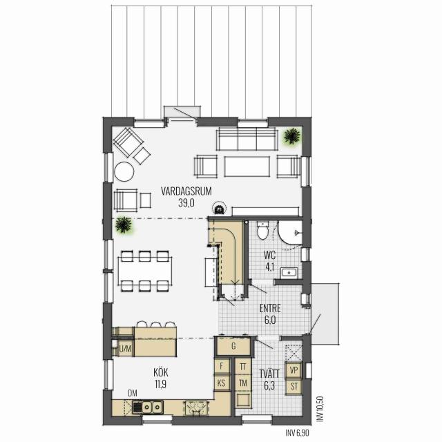 Links und rechts vom Eingangsbereich befinden sich der Hauswirtschaftsraum und ein Gäste-WC mit Dusche. Beim Betreten des Hauses erhalten Sie schon einen ersten Blick auf die helle und großzügige Küche sowie den sich anschließenden Essbereich. Wohn-, Essbereich und Küche sind offen miteinander verbunden. In der Mitte wurde die Treppe mit darunter liegenden Stauraum angeordnet.