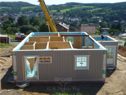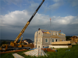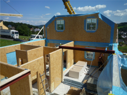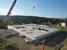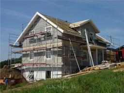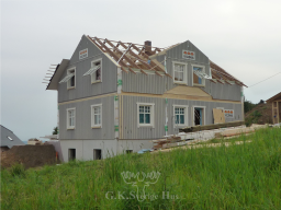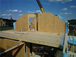 Bevor ein Haus auf dem Bauplatz erstellt werden kann, waren bereits viele fleißige Hände in Deutschland, wie auch im weit entfernten Schweden, im geschichtsträchtigen 600 Jahre alten Ort Eksjö tätig. In den tiefen und weiten Wäldern Schwedens wurden die Bäume für das Bauholz geschlagen, gesägt und bearbeitet um dann konstruktiv zusammengefügt und als fertige Wand- und Dachelemente verladen zu werden. Eine Fähre brachte dann die LKWs nach Deutschland, um dann pünktlich zum Montagetag, auf dem Bauplatz einzutreffen. Parallel wurden in der gleichen Zeit die Fundamente gefertigt und der Bauplatz für den großen Tag vorbereitet!