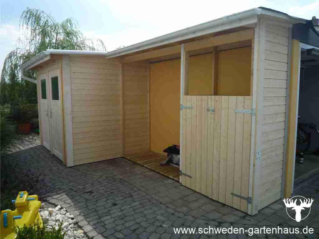 Optimal auf die jeweilige Ofengröße und des Jahresbedarf abgestimmt, liefern wir unsere Holzlegen in verschiedenen Größen. Als Faustregel wählt man die Größe vom doppeltem Jahresbedarf, so kann immer eine Jahresmenge vortrocknen. Selbstverständlich fertigen wir auch unsere Holzlegen exakt nach Ihren Maßangaben! Die spezielle luftdurchlässige Boden- und Wandkonstruktion garantiert eine optimale Lagerung und Trocknung des Brennholzes. Der speziell angefertigte Querschnitt unserer Wandschalung gewährleistet eine maximale Belüftung bei optimalem Witterungsschutz. Wahlweise erhalten Sie die Holzfassade unserer G.K. Sverige Hus – Holzlegen aus originaler Nordischer Fichte oder Sibirischer Lärche.