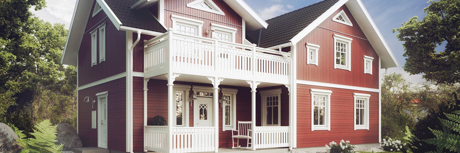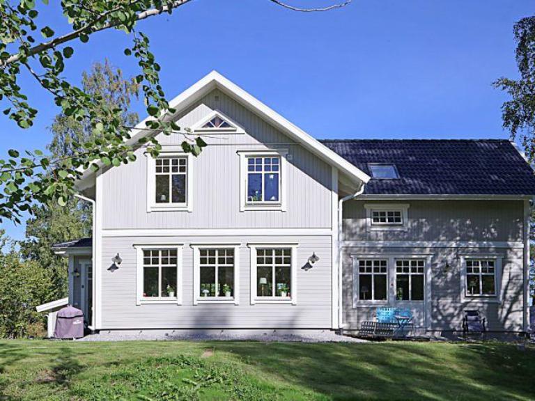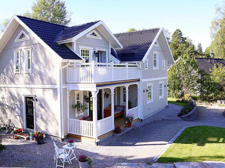 Dieses schwedische Landhaus mit seiner Drei-Giebelkonstruktion und der vorgesetzten Veranda mit Balkon verleihen dem Haus eine besondere Note und unterstreichen durch perfekte Proportionen die harmonische Architektur schwedischer Landhäuser. Der gut durchdachte Grundriss ermöglicht einer vierköpfigen Familie großzügigen Lebensraum.