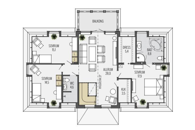 Der Gemeinschaftsraum mit Kathedraldecke und Zugang zum wunderschönen Balkon auf der Gartenseite macht das gesamte Obergeschoss zu einer Attraktion. Die großzügig angelegten Schlafräume und das Elternschlafzimmer mit Ankleide, lassen keinen Wunsch offen. Das großzügige Bad unterstreicht den exklusiven Anspruch des Björkenäs.