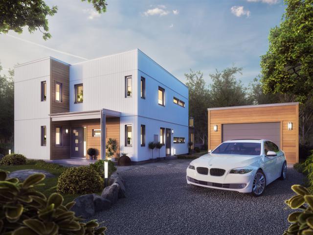 Der hier im Bauhausstil vorgestellte Entwurf setzt Maßstäbe; modern, funktional und schlicht. Klare Linienführungen und geometrische Proportionen sind bei den Anhängern dieser Architektur nur zwei von vielen Gründen, sich für dieses moderne Haus zu entscheiden. Die unterschiedliche Farbgebung der Fassade unterstreicht die kubistische Form der Baukörper mit dem typischen Flachdach. Eine atemberaubende, zeitlose Architektur für Individualisten.