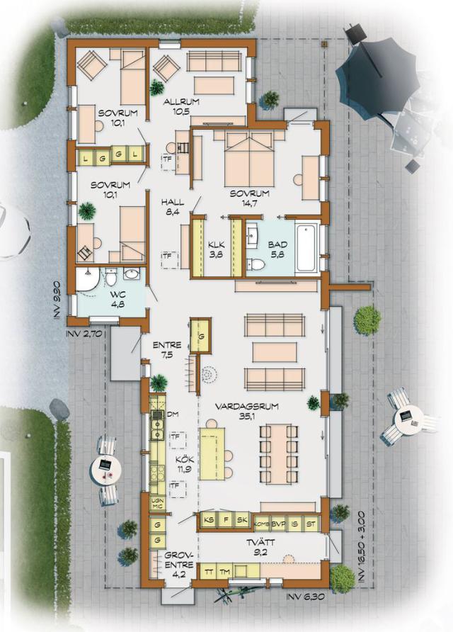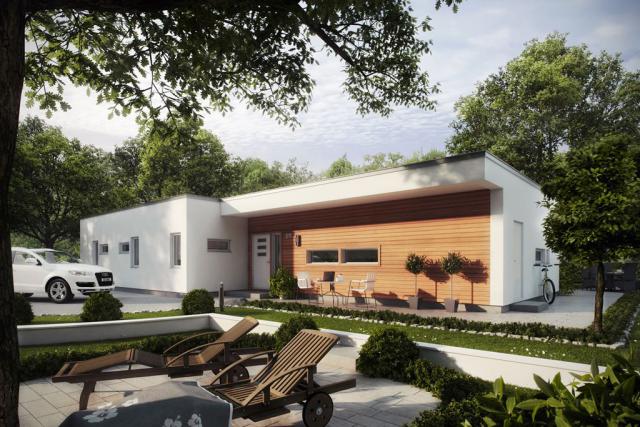 ... für das moderne Stadtmilieu. Das Haus wurde in einer kubistische Formensprache mit horizontalem Charakter und klar strukturierten Linien geplant. Mühelos kann der Baukörper an jede gewünschte Größe angeglichen werden. Dachvorsprung und Materialmix der Fassade muten futuristisch an und unterstreichen den Individualismus seiner Bewohner. Schutz vor Sonne und Regen erhalten die angelegten Terrassen, konstruktionsbedingt, ganz automatisch.