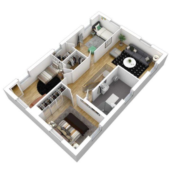 Für Familien mit Kindern bietet das Obergeschoss kurze Wege um den Alltag und vor allen Dingen die eventuell auftretenden nächtlichen Störungen zu meistern. Später wenn die Kinder ausgezogen sind oder Gäste zum Schlafen vorbei kommen lassen sich die kleinen Zimmer leicht in Arbeits-, Gäste- oder Ankleidezimmer umwandeln, oder zu etwas anderem ganz nach Ihren Bedürfnissen und Wünschen.