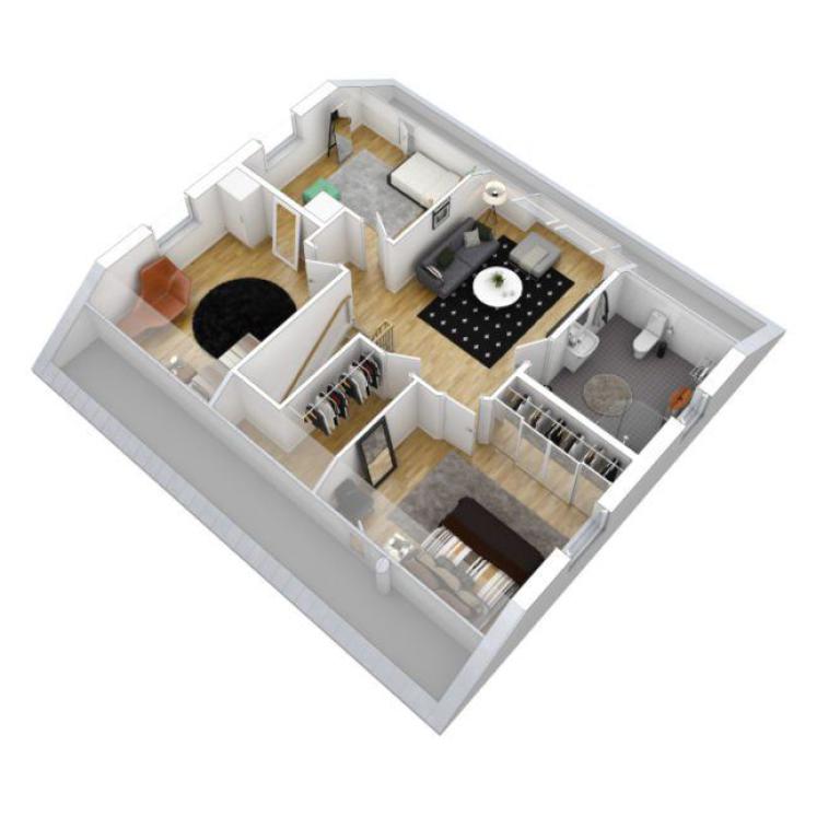 Der Grundriss ermöglicht es Ihnen aber auch ein weiteres Zimmer vom Wohnbereich abzutrennen, falls der Bedarf da sein sollte.